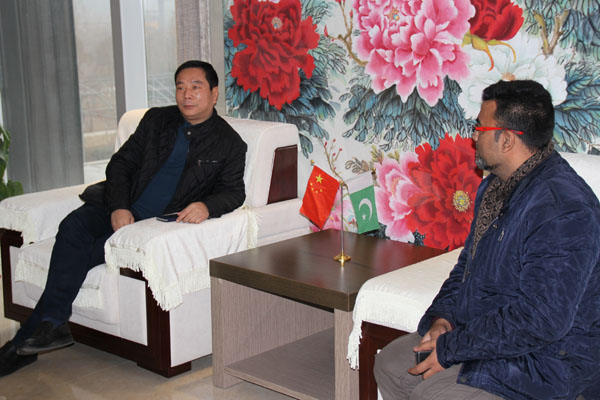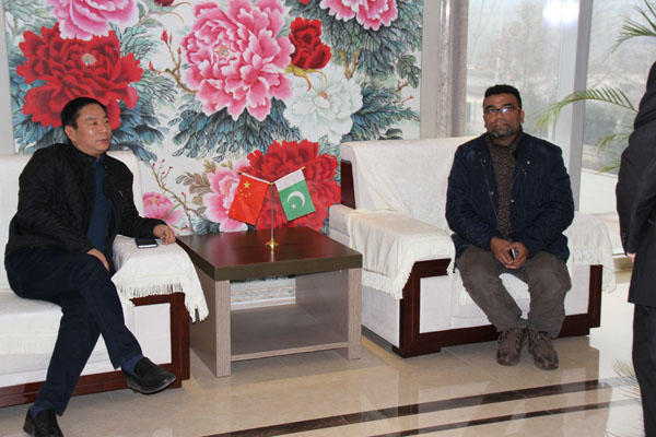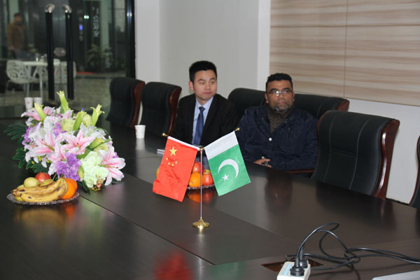 2015-1-24上(shàng)午在東起集團在(外貿公司(sī)張總)的帶領下,一行四人來(lái)到公司,進行友好來訪,公司董事長王立建親自(zì)接待並陪(péi)同客人到車間觀摩(mó)。雙方在友好(hǎo)合作的前提下進行了細致的交談(tán),並達成(chéng)共識。巴基斯坦客人對東起公司做出了肯定,並草擬了(le)合作意向書,此次來訪另客人在十分滿意的前(qián)提下***結束(shù)!